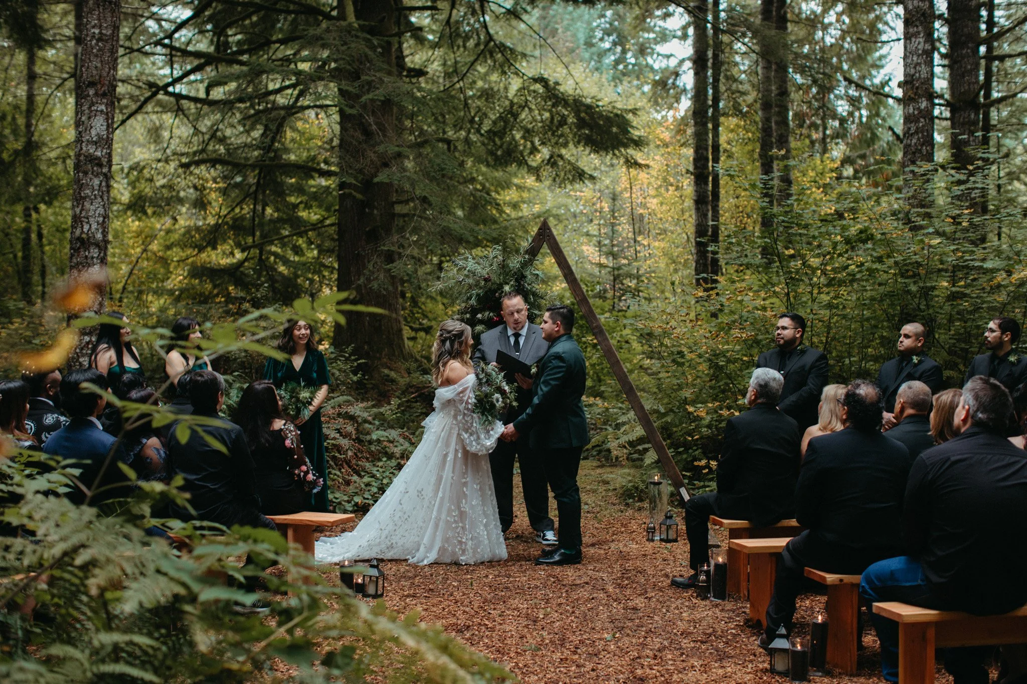 A twilight celebration tucked among towering trees, where intimate moments and delicate details bring the forest to life. Every choice — from lighting to florals — was curated to feel effortless and true to the couple.